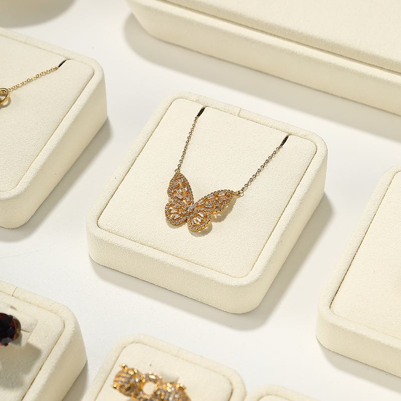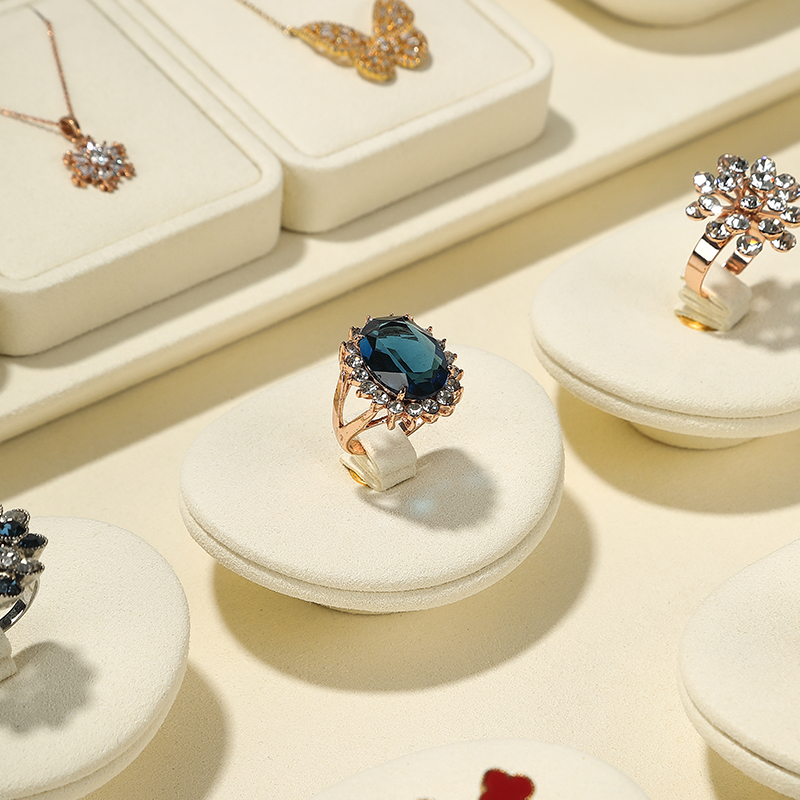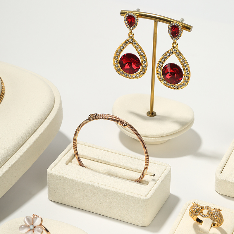 S001 Beige DIGU Handmade high quality Microfiber Necklace Ring Earring Jewelry Display Set
