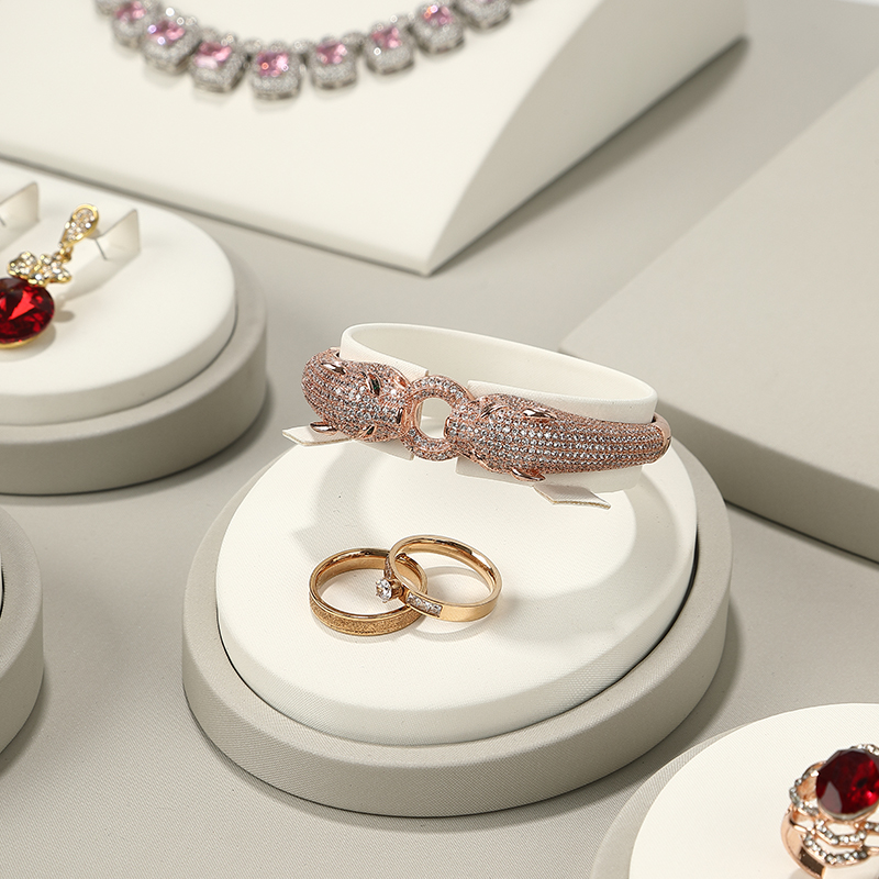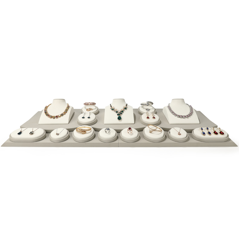 S010 Beige DIGU Design Luxury Beige PU Leather Jewelry Showcase Set