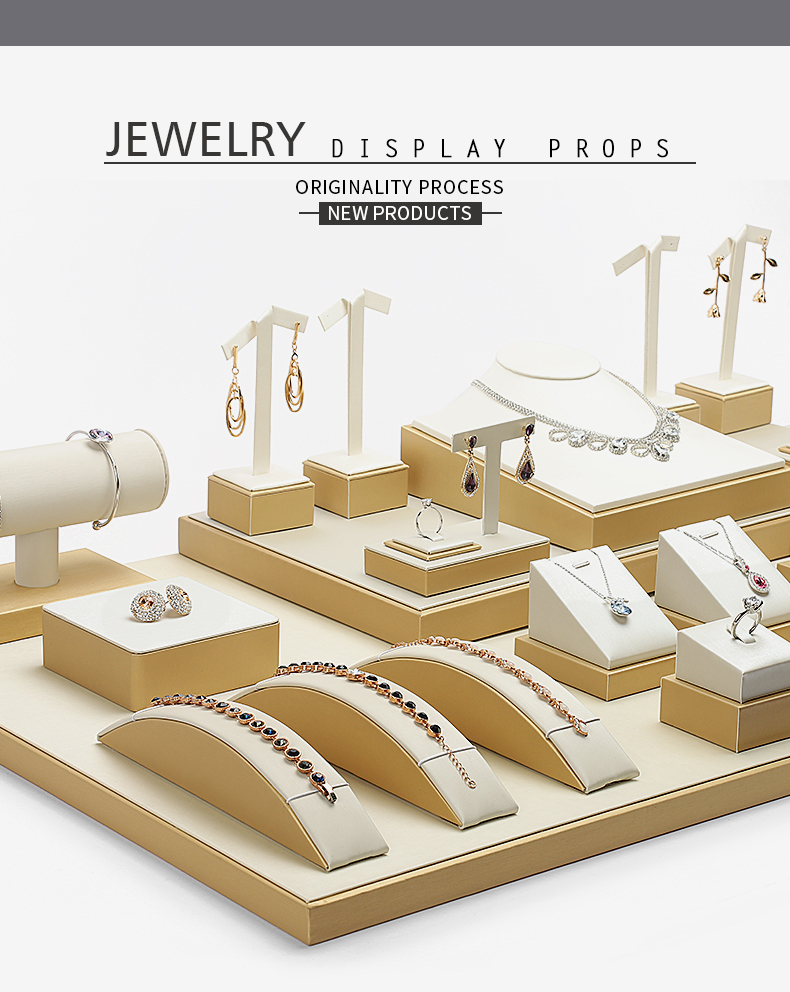 S037 beige DIGU 2024 Hot selling PU Leather jewelry props jewelry display set